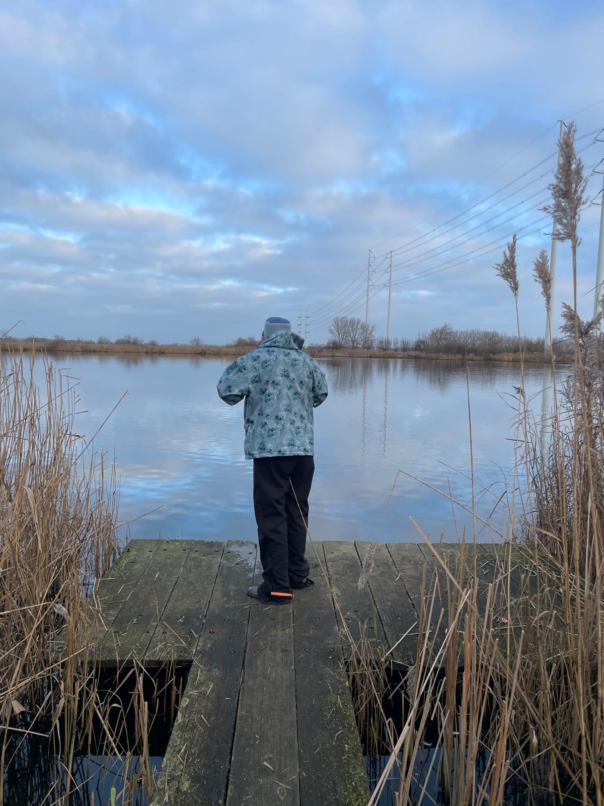 We starten in Schokkerhaven, waar we via een strandje het water op kunnen. Een man met een zeilboot wuift ons uit. Het is rustig op het water.